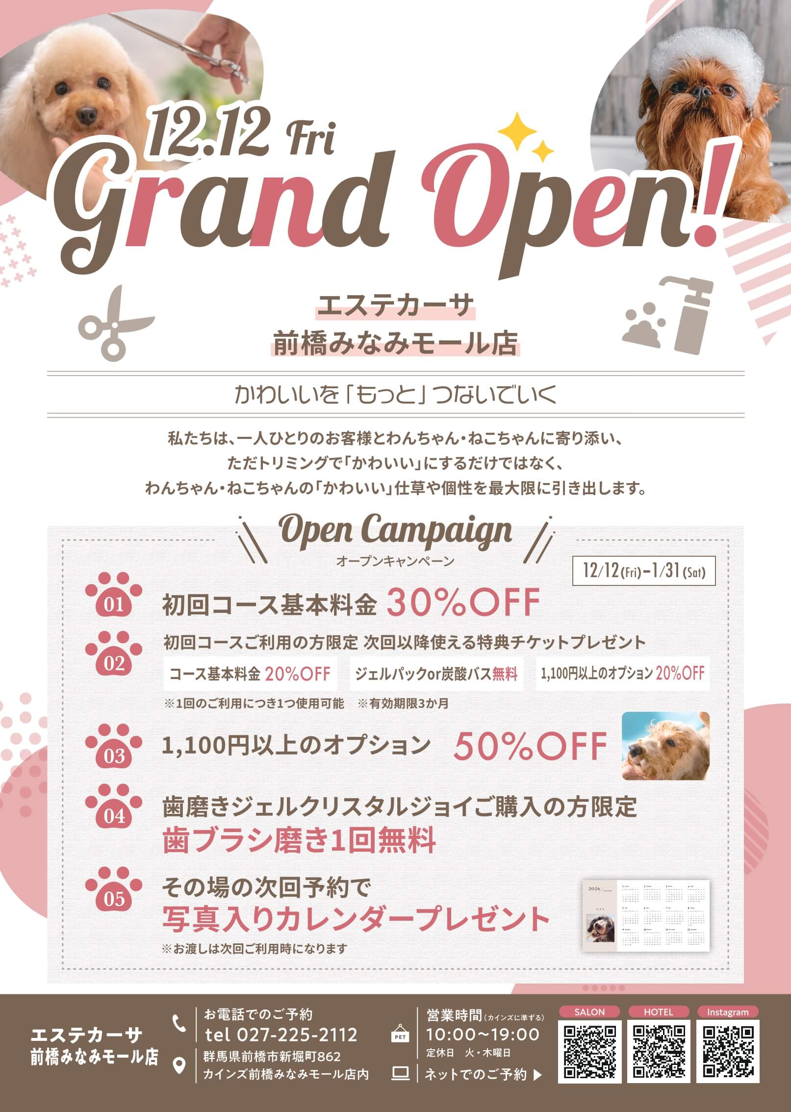 2025年12月12日(金) エステカーサ前橋みなみモール店 グランドオープン!!